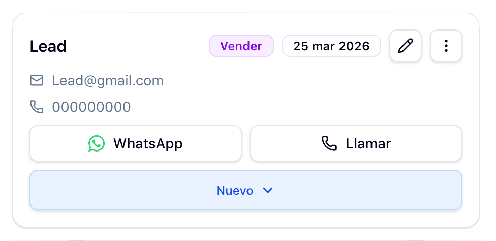 Botones de WhatsApp, llamada y guardado automático de contacto en el móvil del cliente. Sin fricciones.