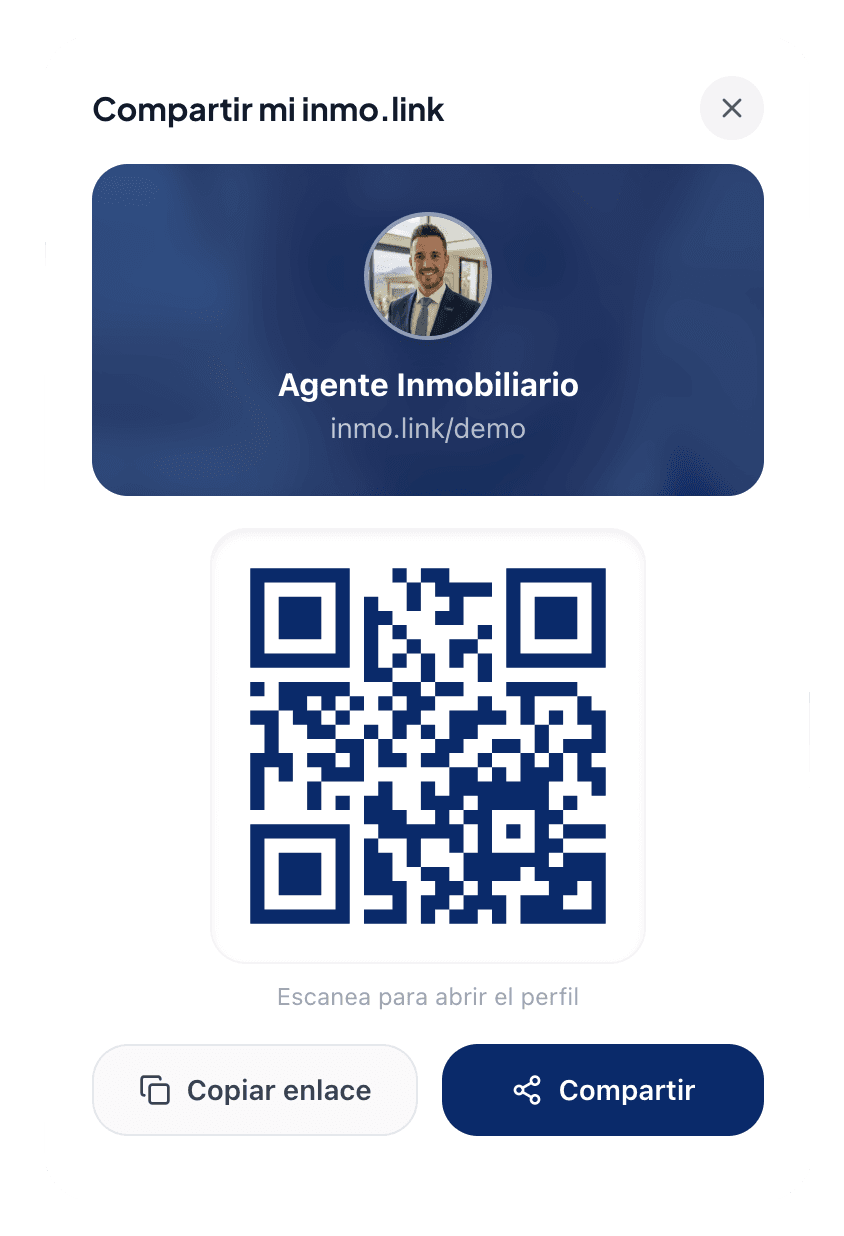 Lleva tu inmo.link a cualquier sitio: tarjeta de visita, flyer, email o Instagram.