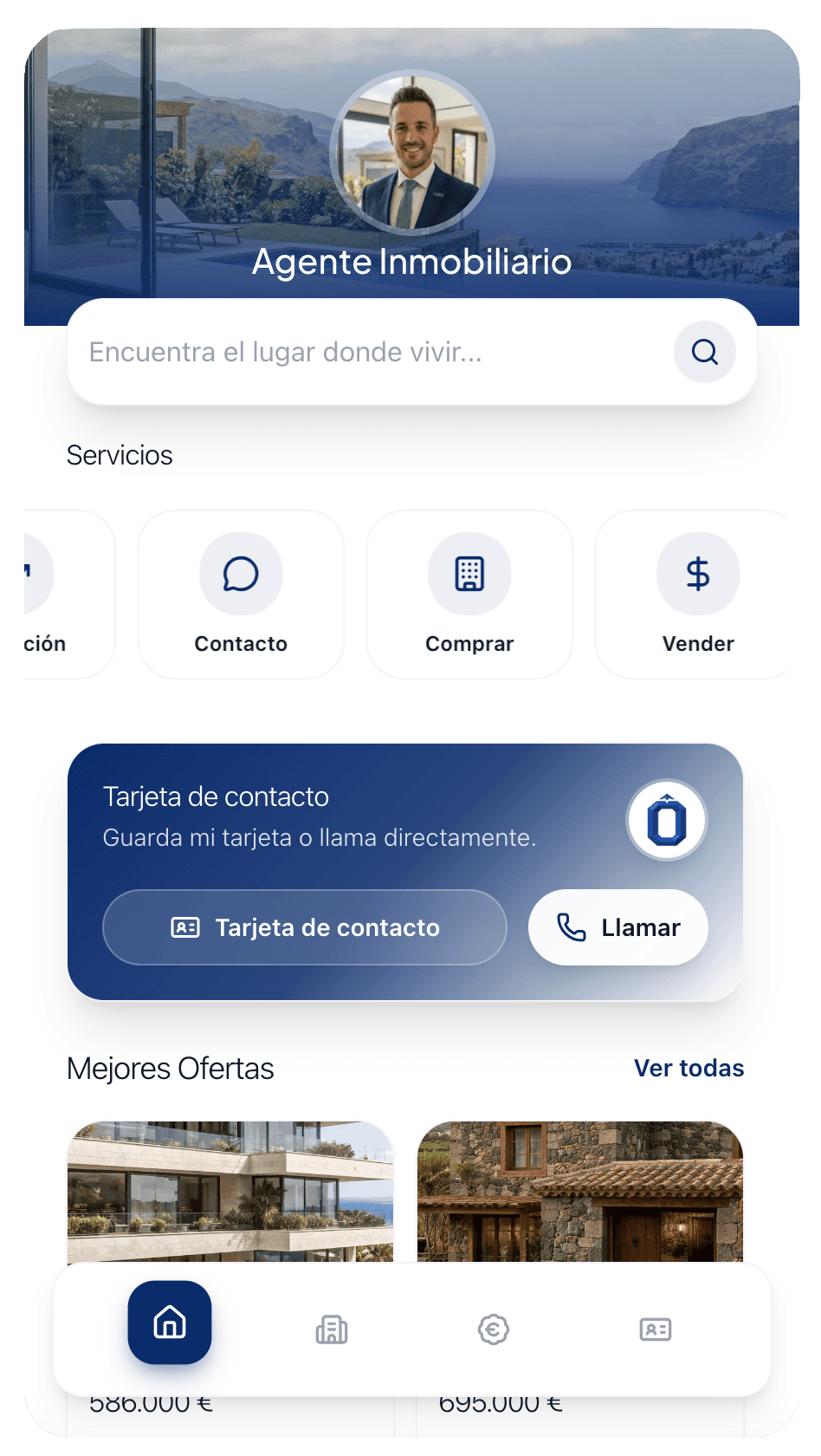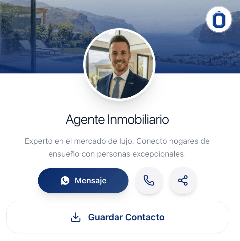 Preséntate con foto, bio, especialidad, redes sociales y contacto directo. Tu imagen profesional en inmo.link/tu-nombre.